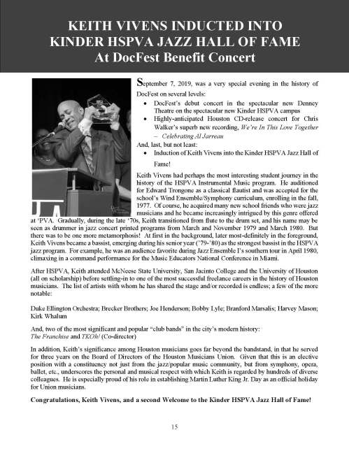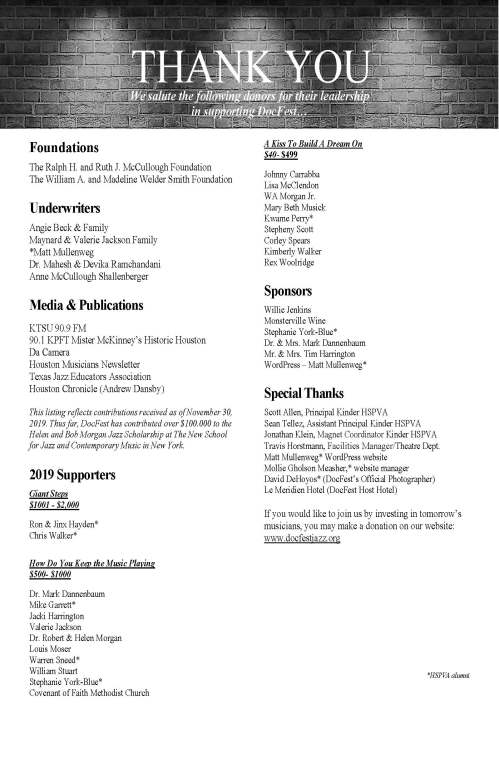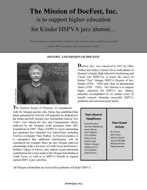 The Mission of DocFest, Inc. is to support higher education for HSPVA alumni.