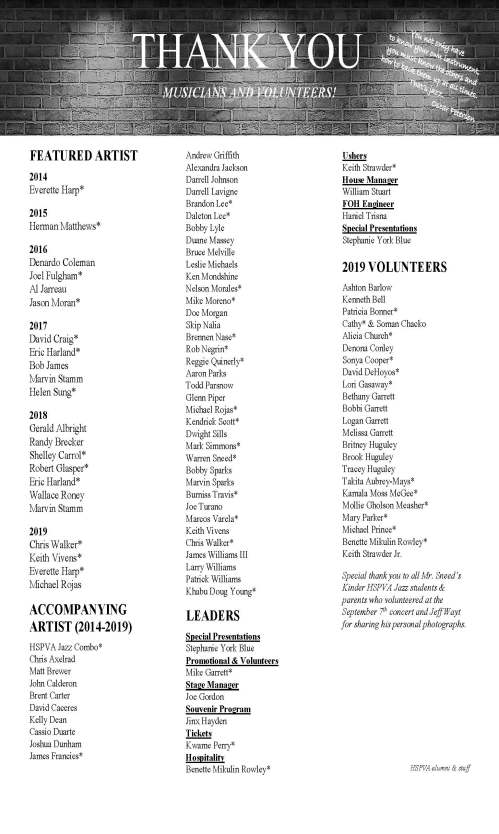 This is primarily accomplished by an annual series of benefit concerts featuring successful HSPVA graduates and renowned guest artists.