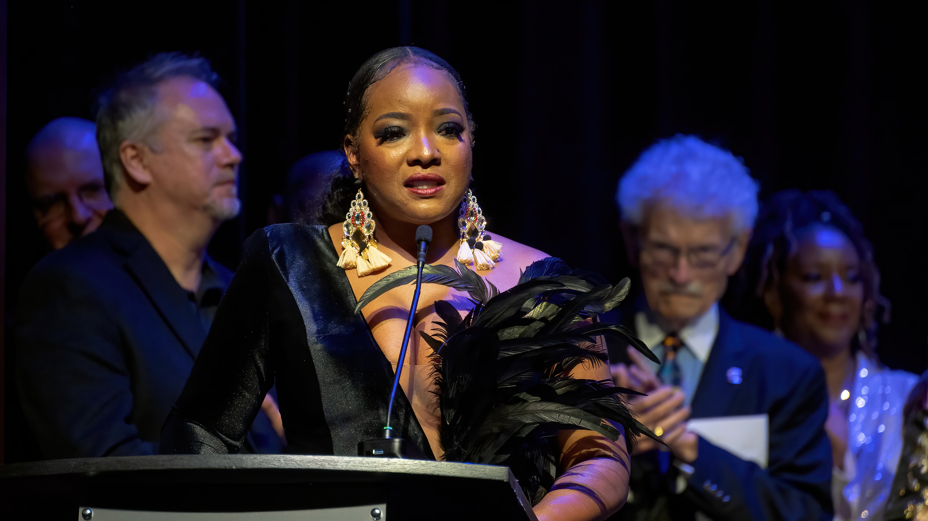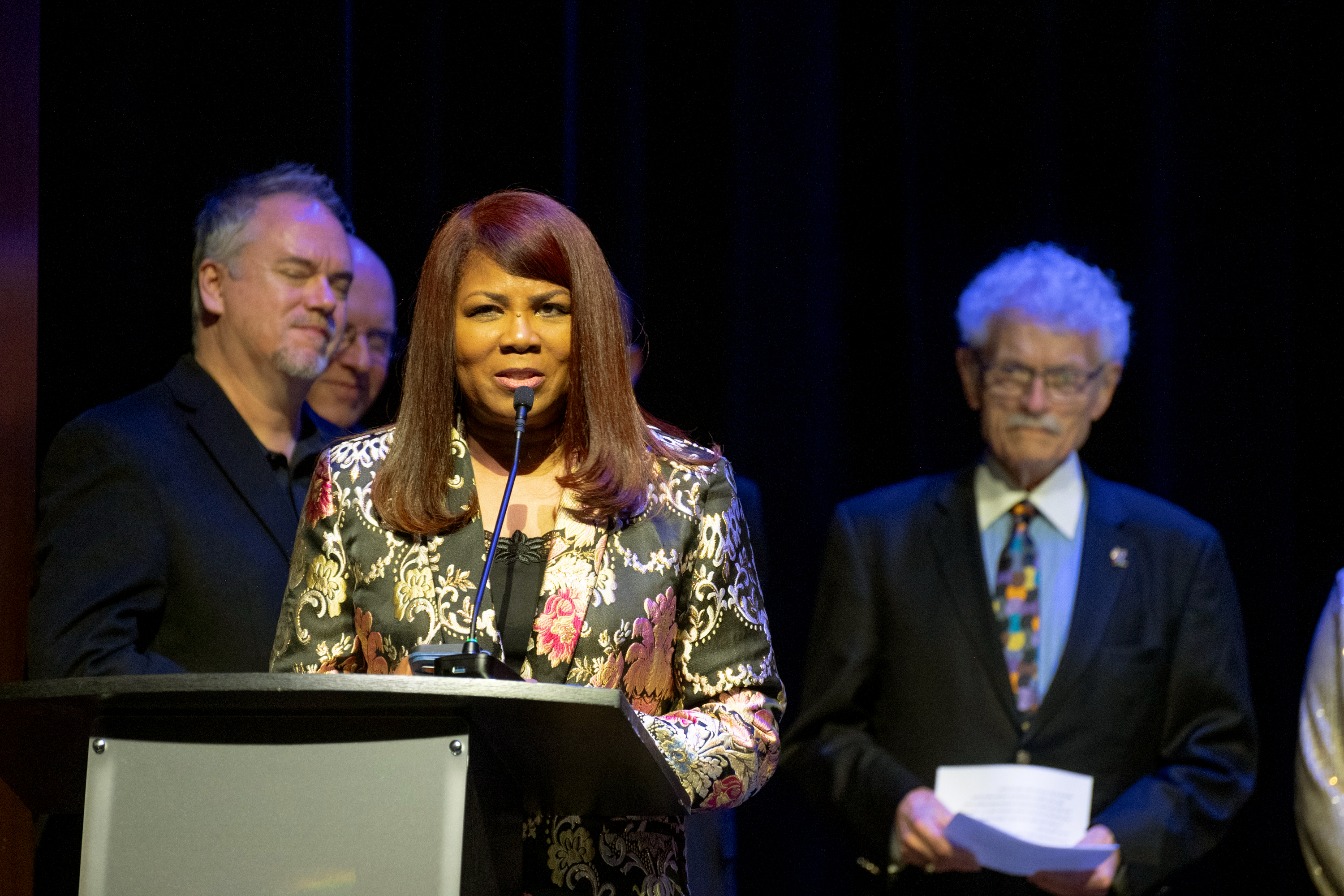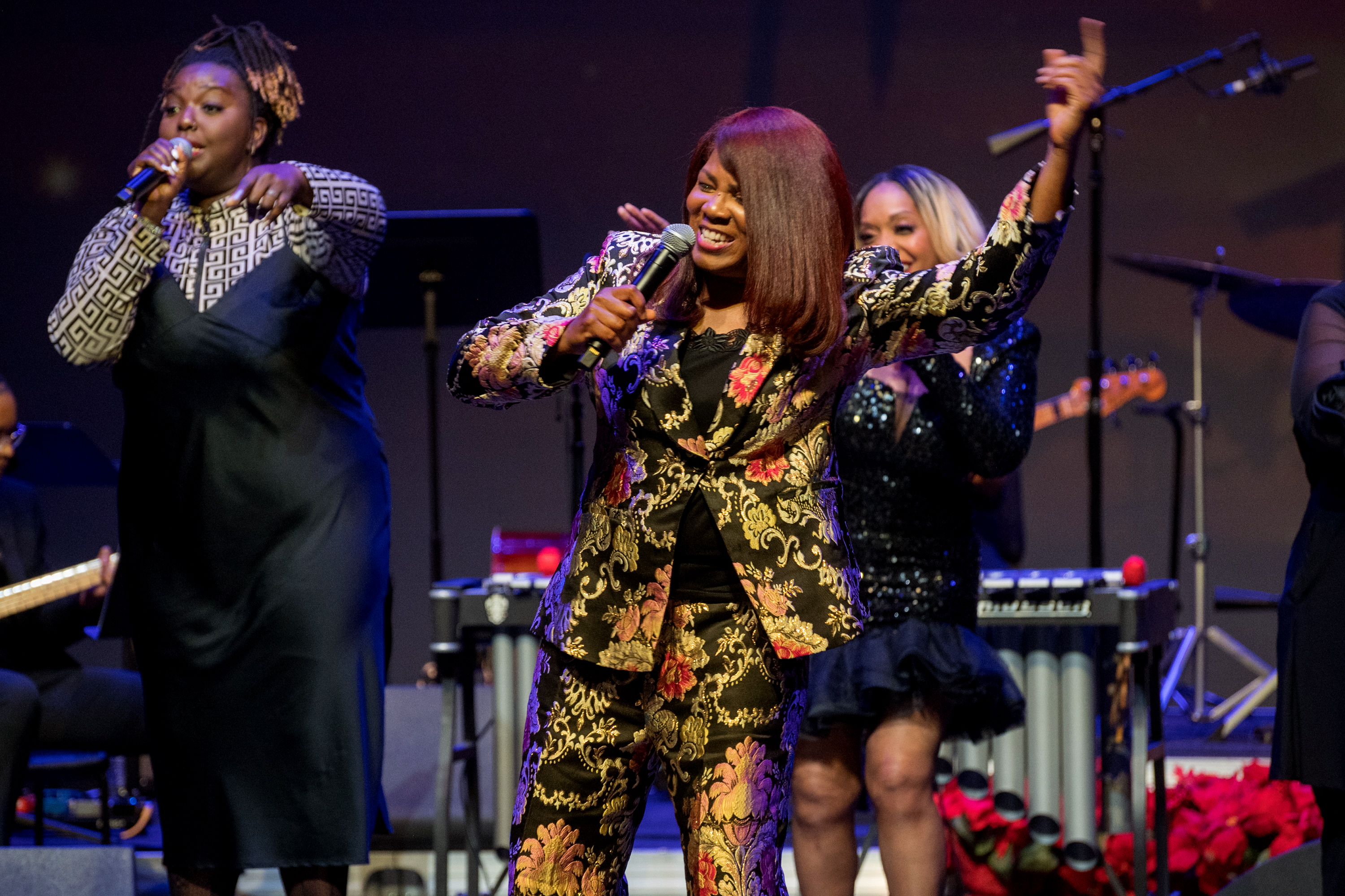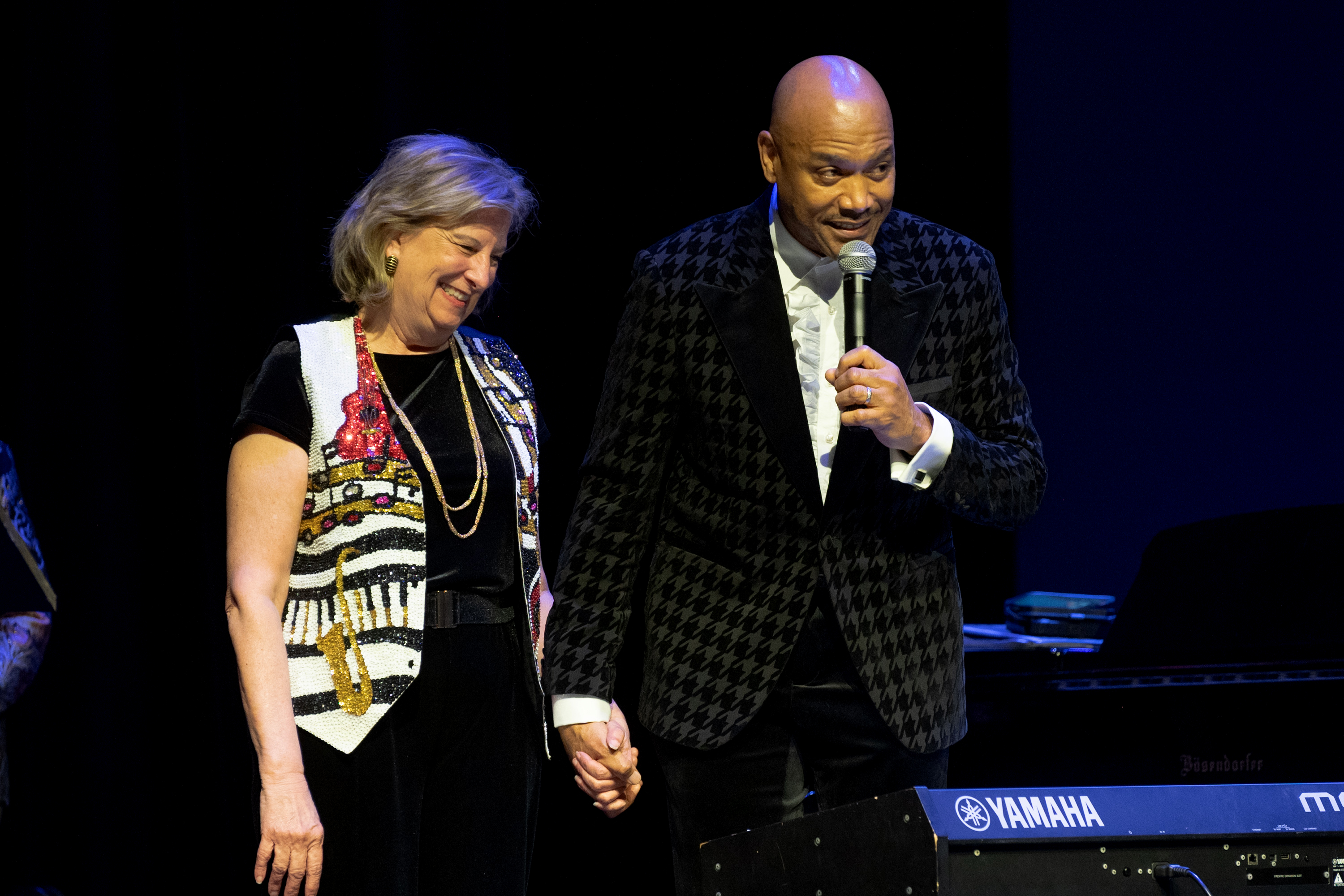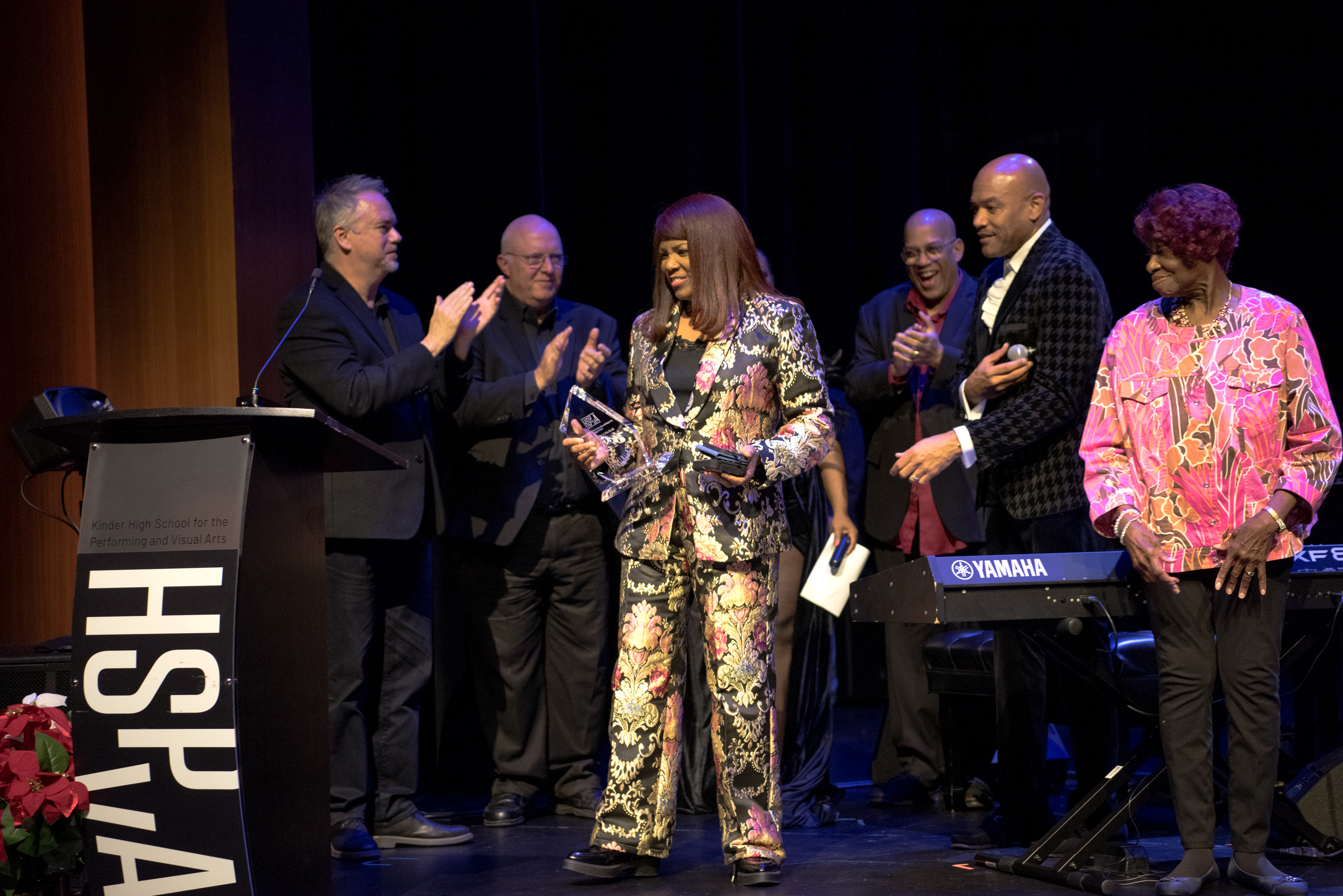 Featured artists and DocFest co-founders Ashley Tamar Davis and Chris Walker performed a selection of original tunes and holiday favorites, accompanied by the “DocFest All-Star Band” rhythm section. For the grand finale, the entire cast joined together for a performance of “This Christmas.” A major highlight of the evening was the induction of Stephanie York Blue and Ashley Tamar Davis into the HSPVA Jazz Hall of Fame. Additionally, Doc Morgan presented Jinx Hayden with an honorary induction into the Hall of Fame in recognition of her extraordinary contributions to DocFest.