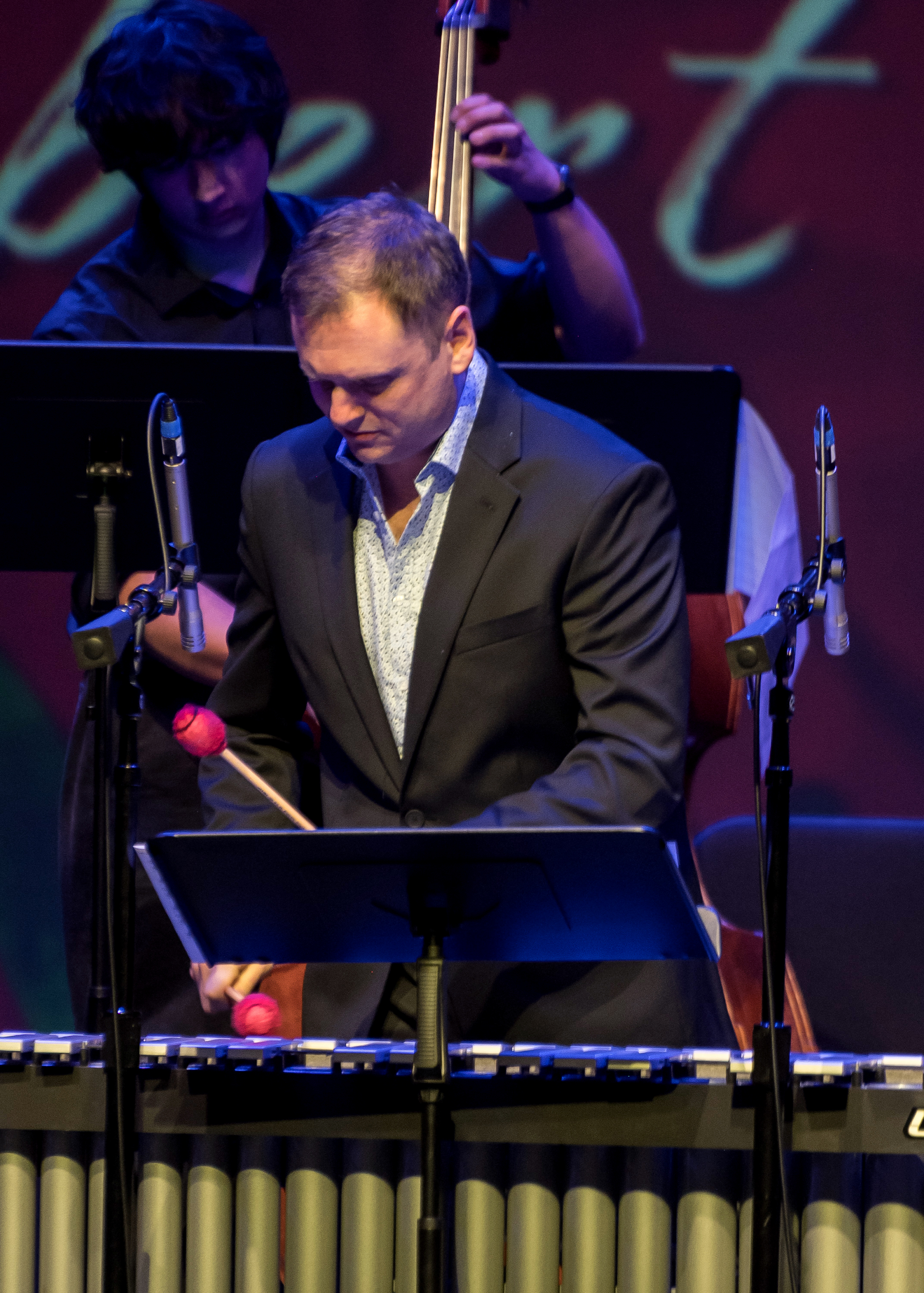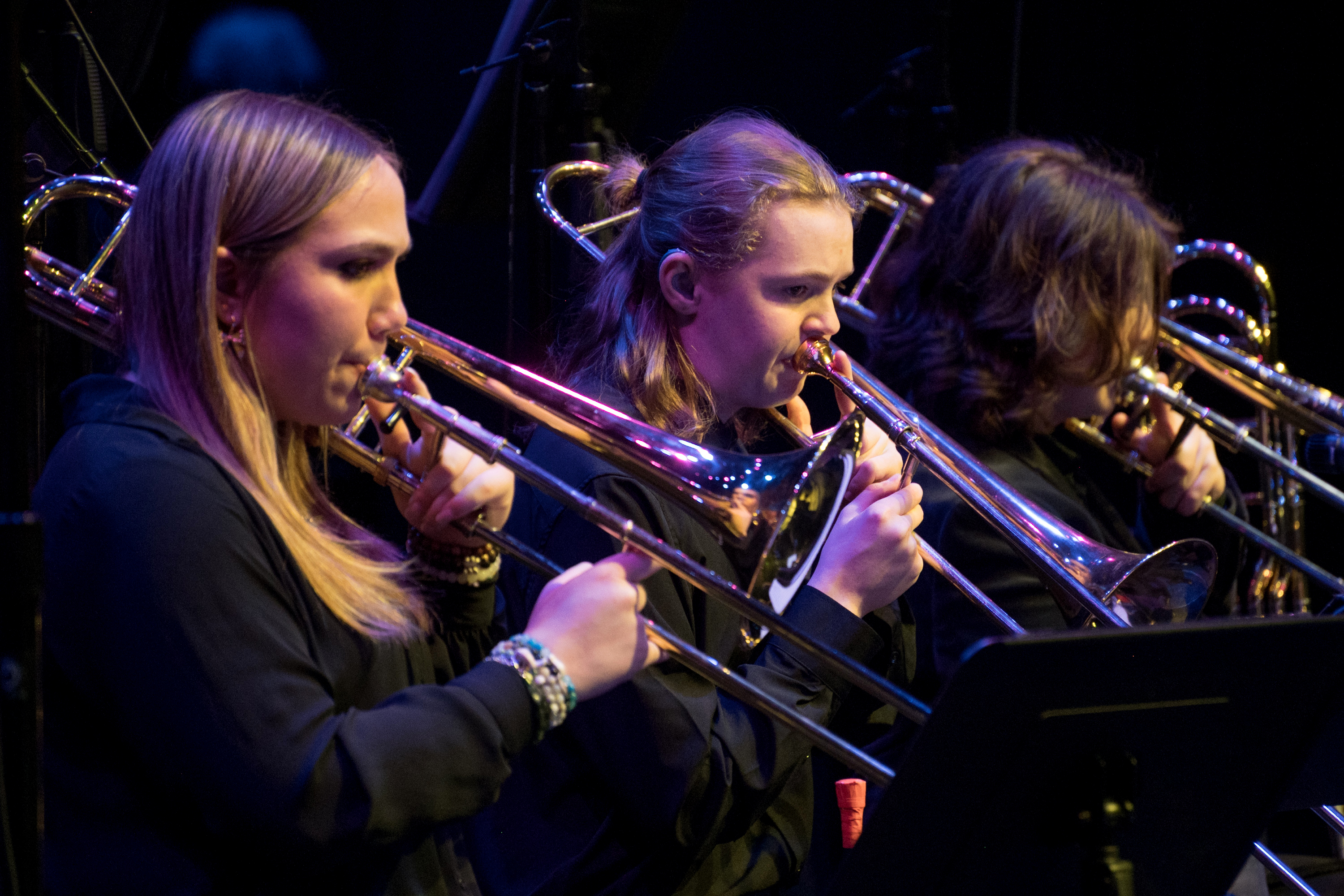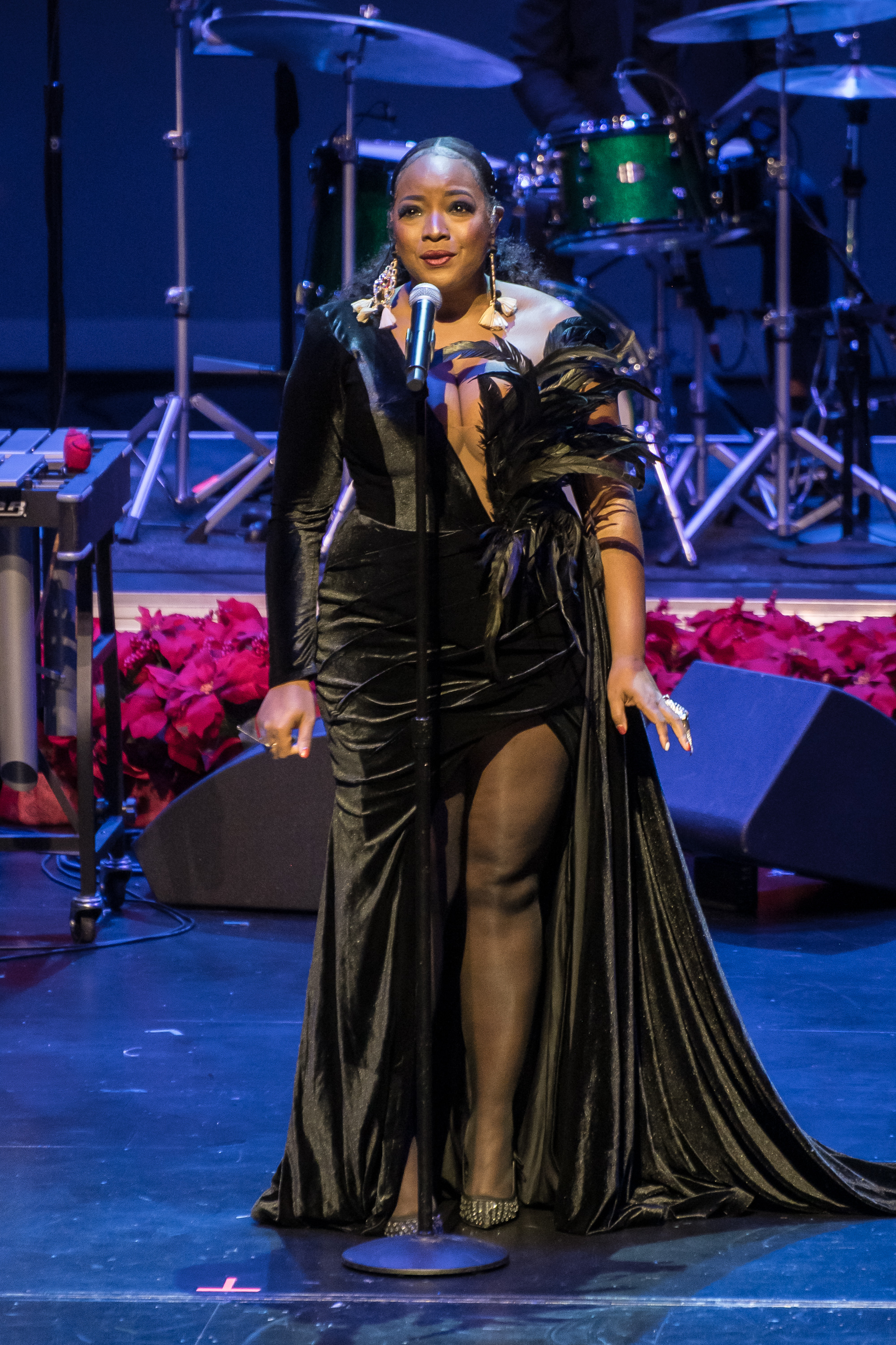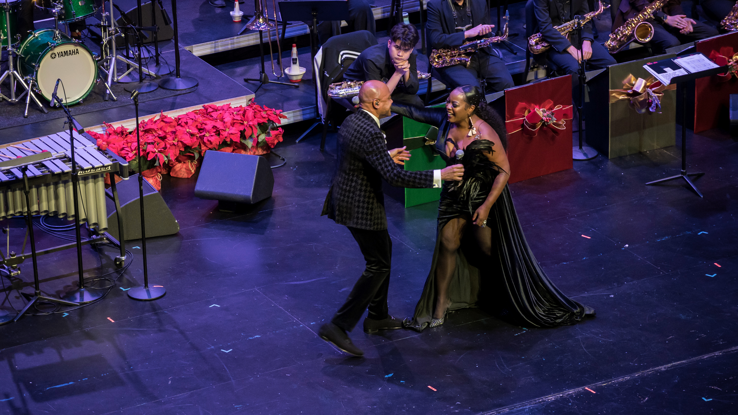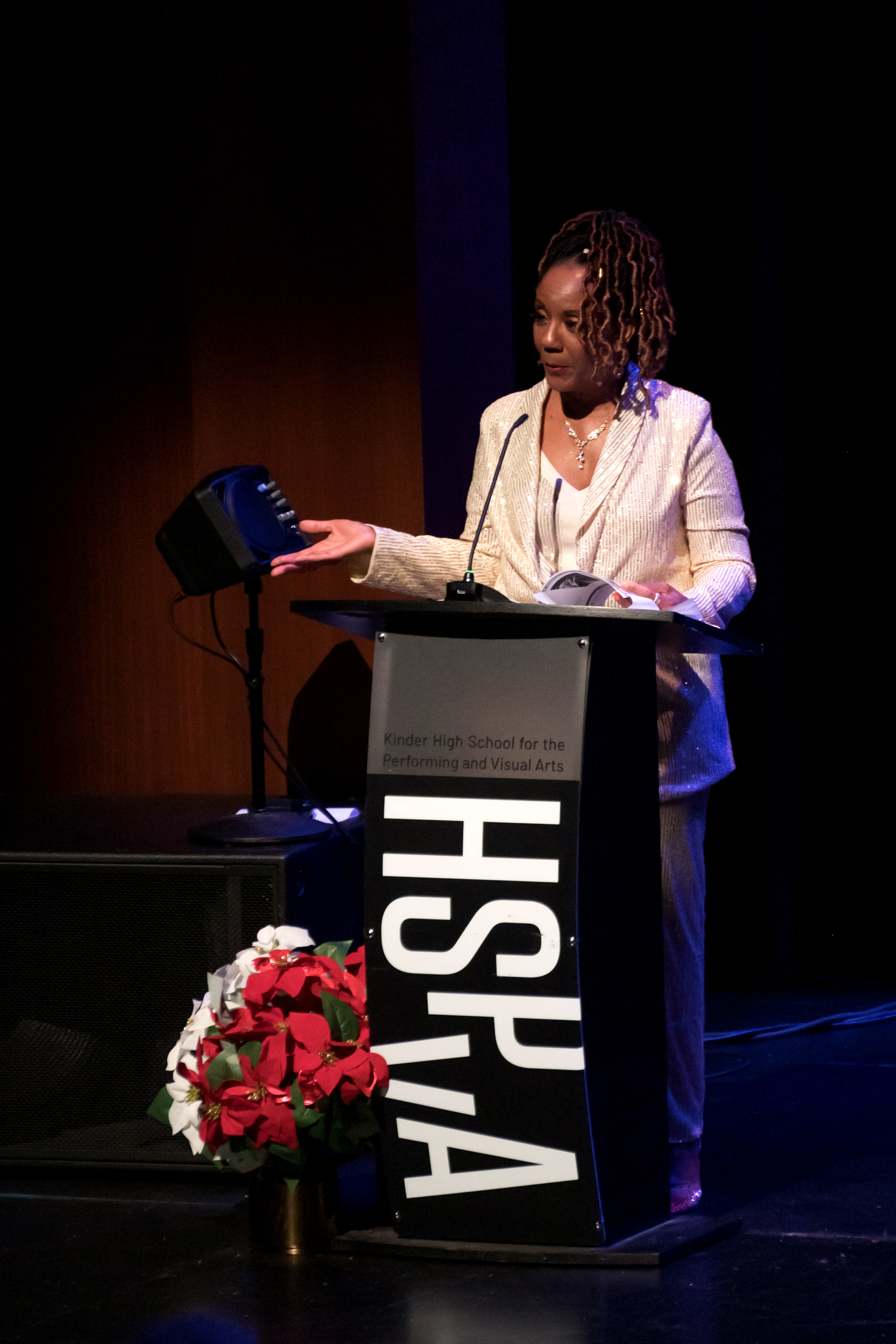 The DocFest 2024 Holiday Concert took place on December 21, 2024, at the Denney Theatre on the Kinder HSPVA campus. Alumna Jeane July served as the Master of Ceremonies for the nearly sold-out event. The program opened with a performance by Stephanie York Blue and her jazz combo, featuring excerpts from her composition, “More Than Christmas.” Part II commenced with the Kinder HSPVA Jazz Ensemble, led by Jazz Director James Westfall. A particularly moving segment followed as Doc Morgan led the ensemble and guest performers—including former students, faculty members, and his nephew—in “A Christmas Trilogy,” a piece written by his father and dedicated to his late brother.