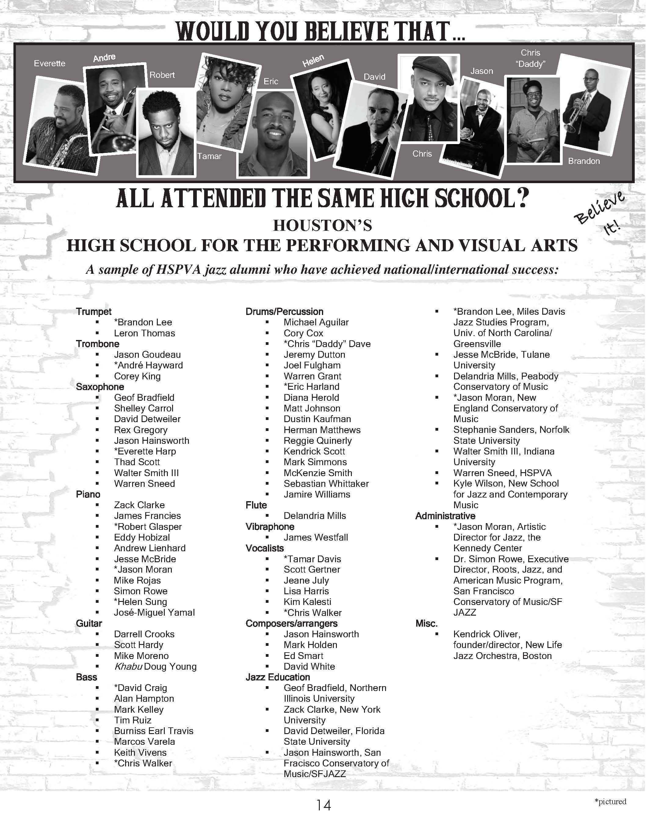 This is primarily accomplished by an annual series of benefit concerts featuring successful HSPVA graduates and renowned guest artists.
