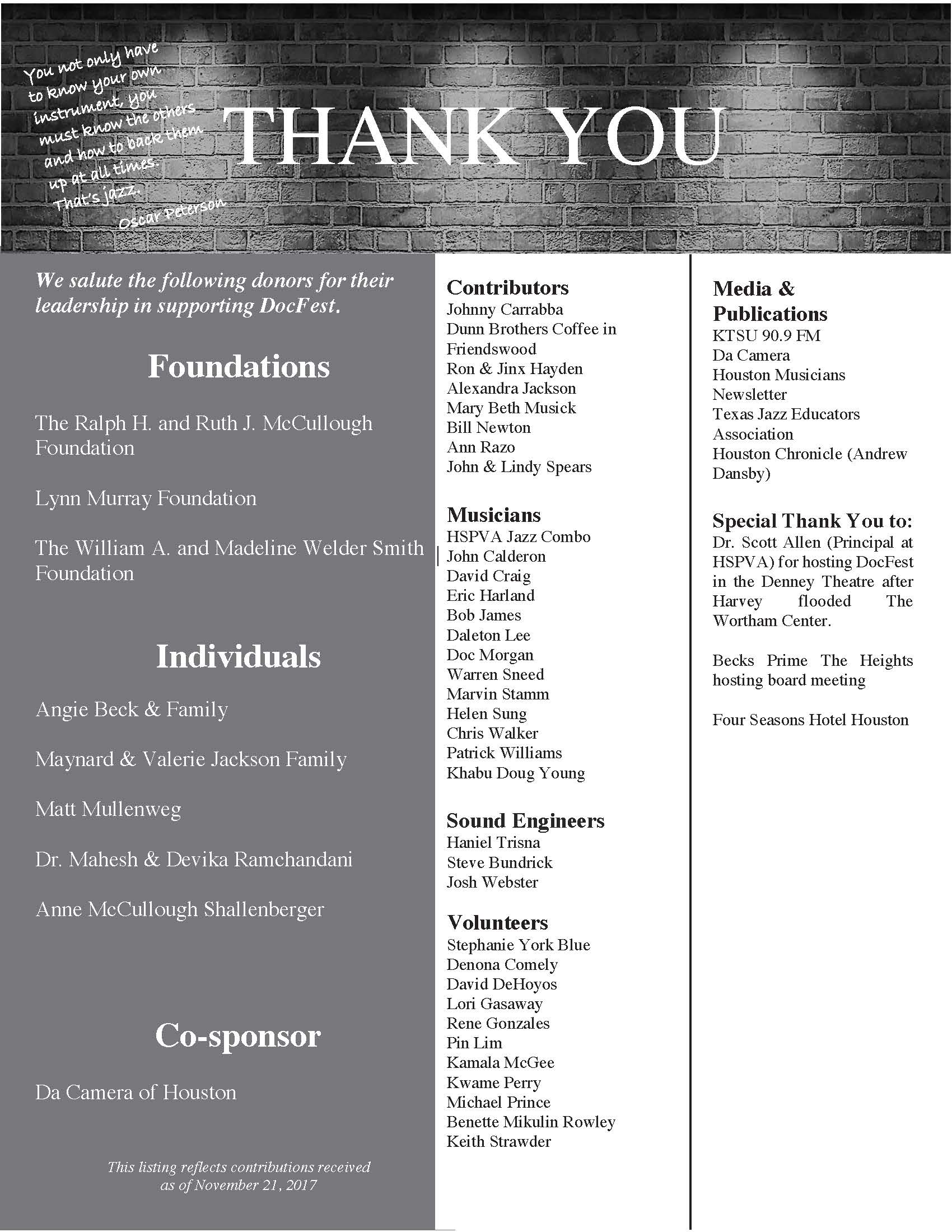 The Mission of DocFest, Inc. is to support higher education for HSPVA alumni.