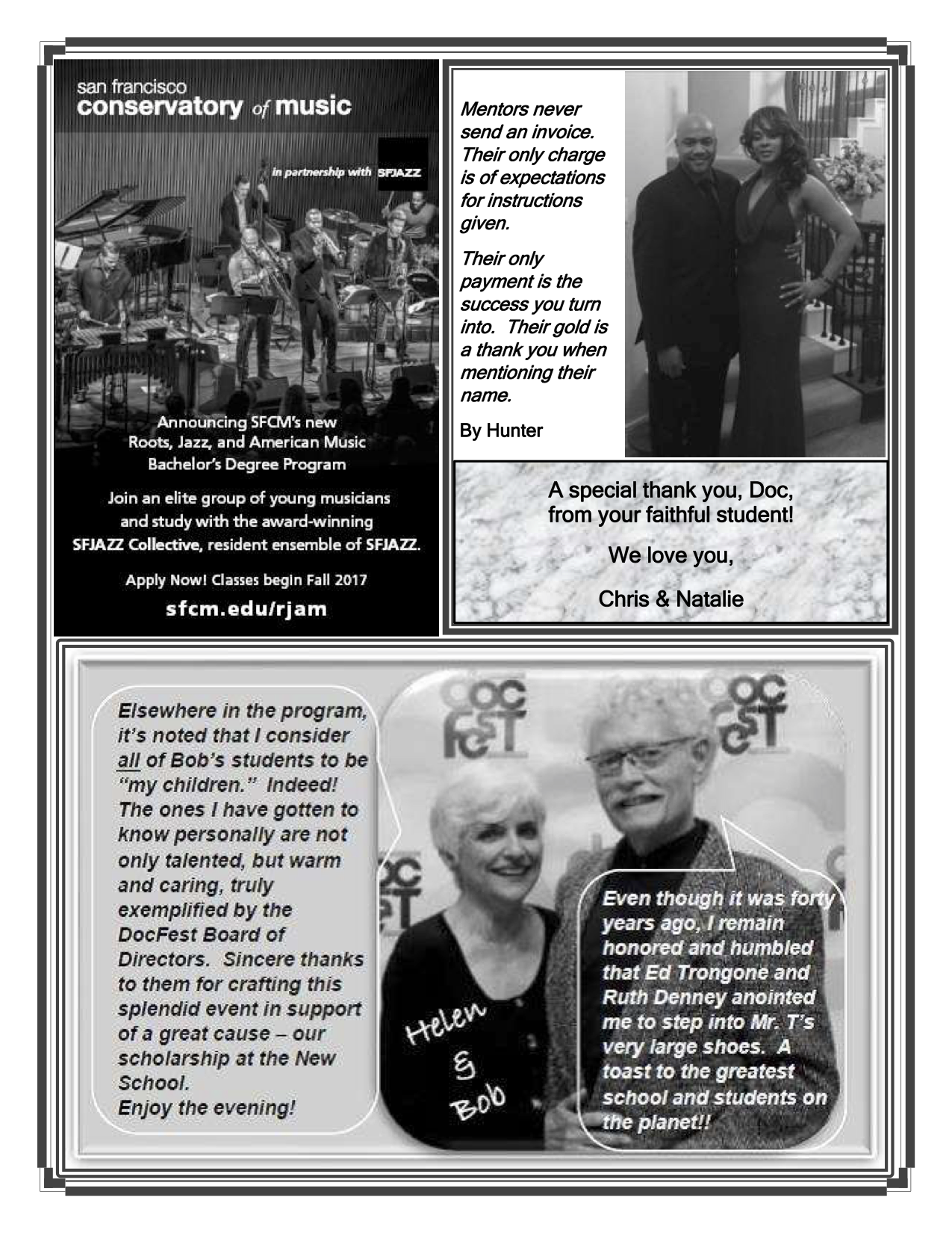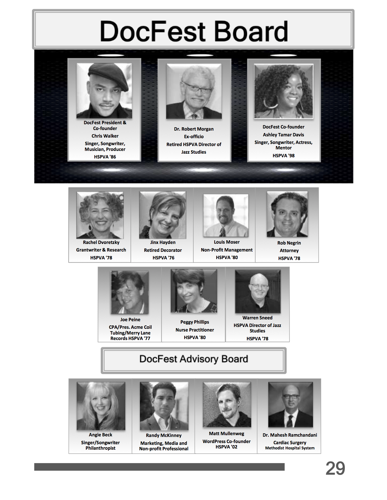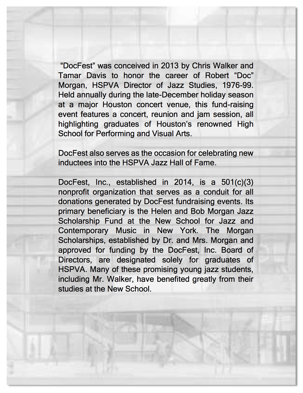 The Mission of DocFest, Inc. is to support higher education for HSPVA alumni.
