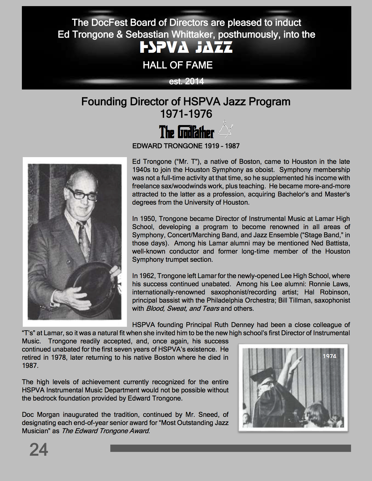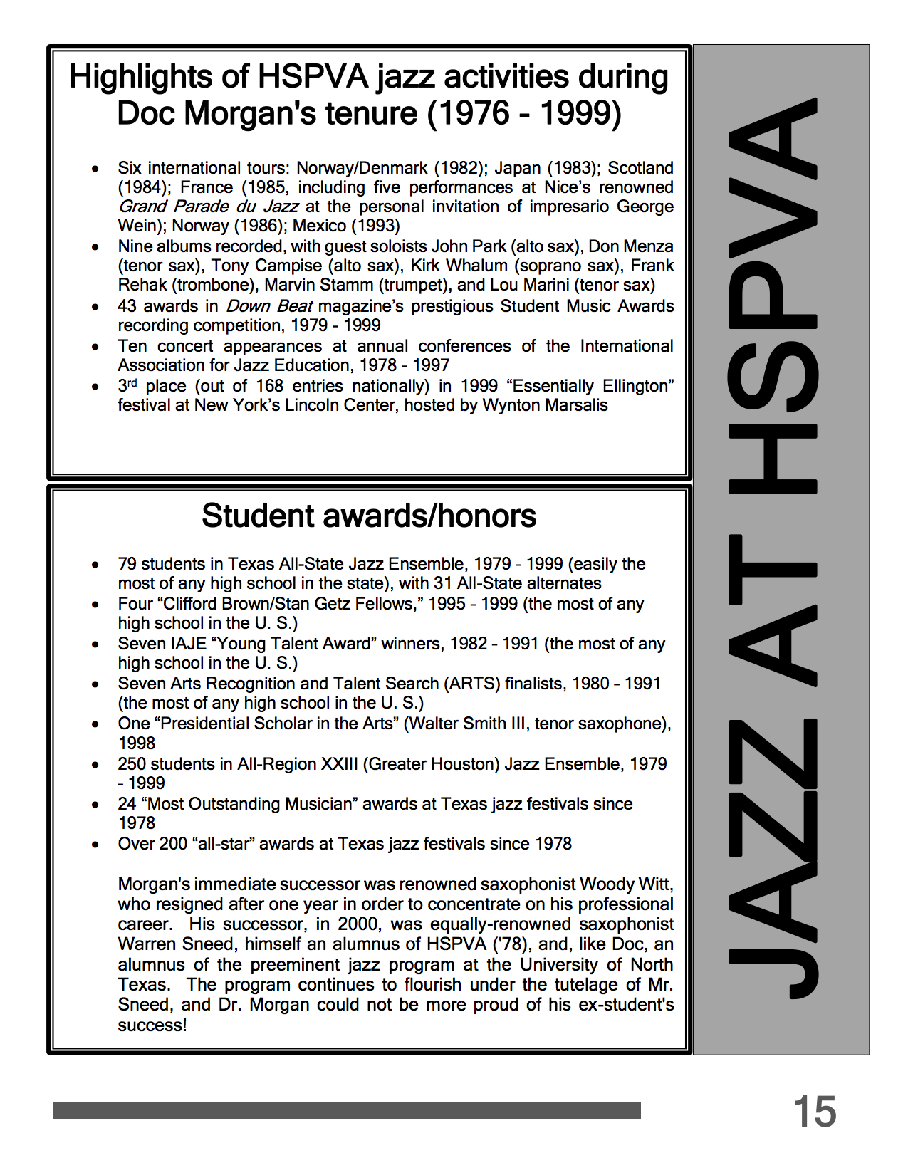 • HSPVA Jazz Hall of Fame