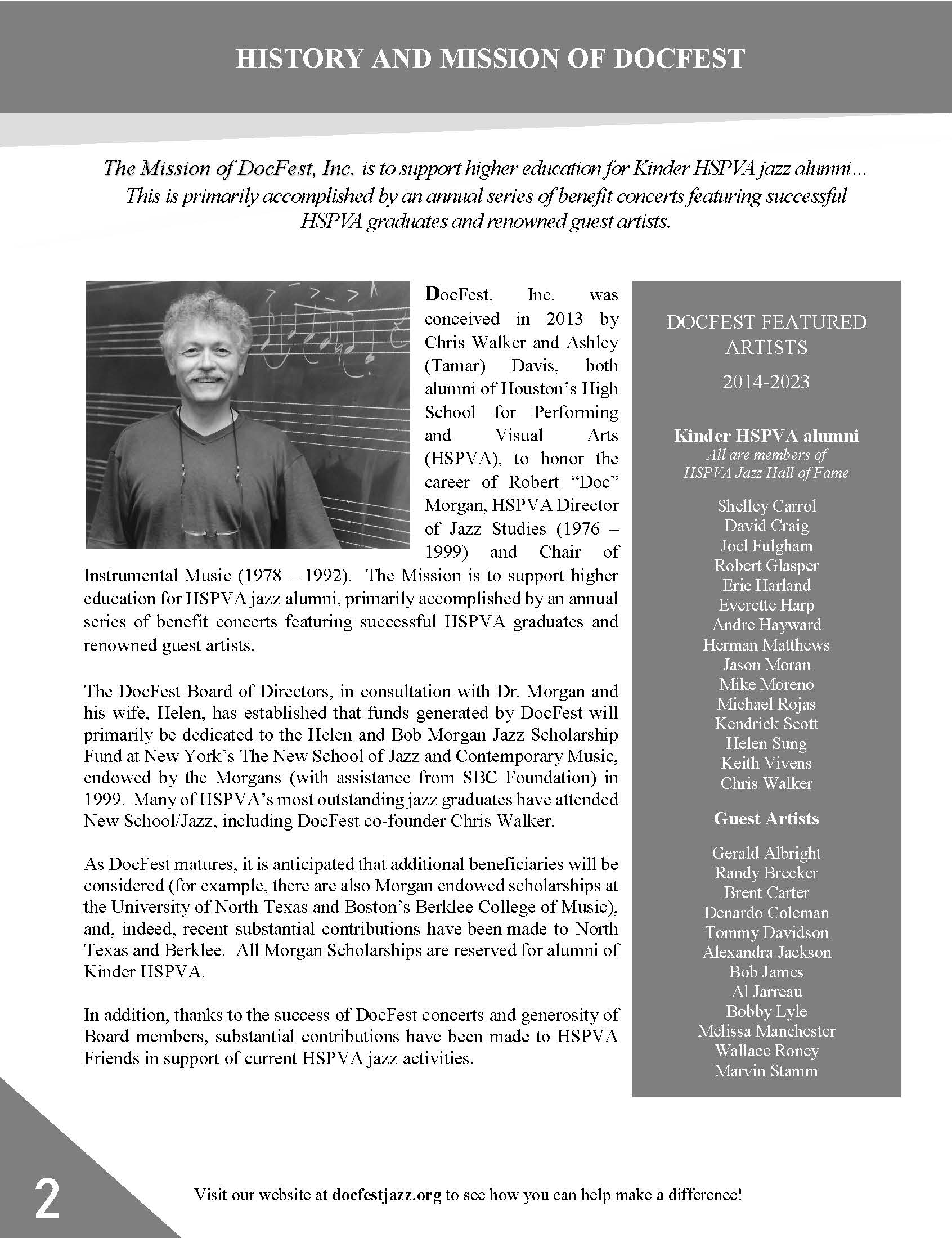• The DocFest Holiday Concert is Dedicated to Doc’s Brother William Adams Morgan, Jr.