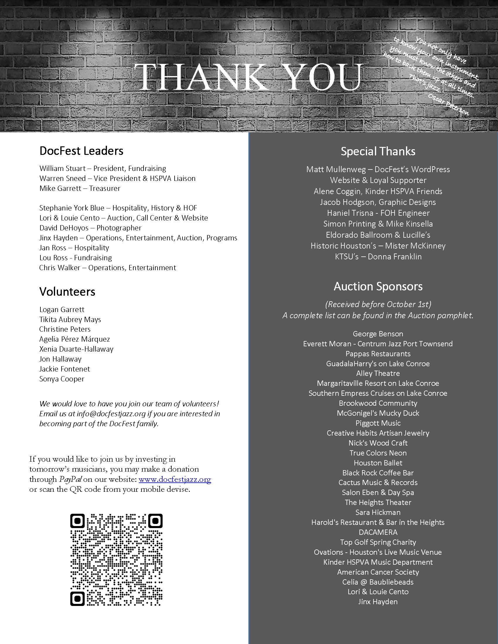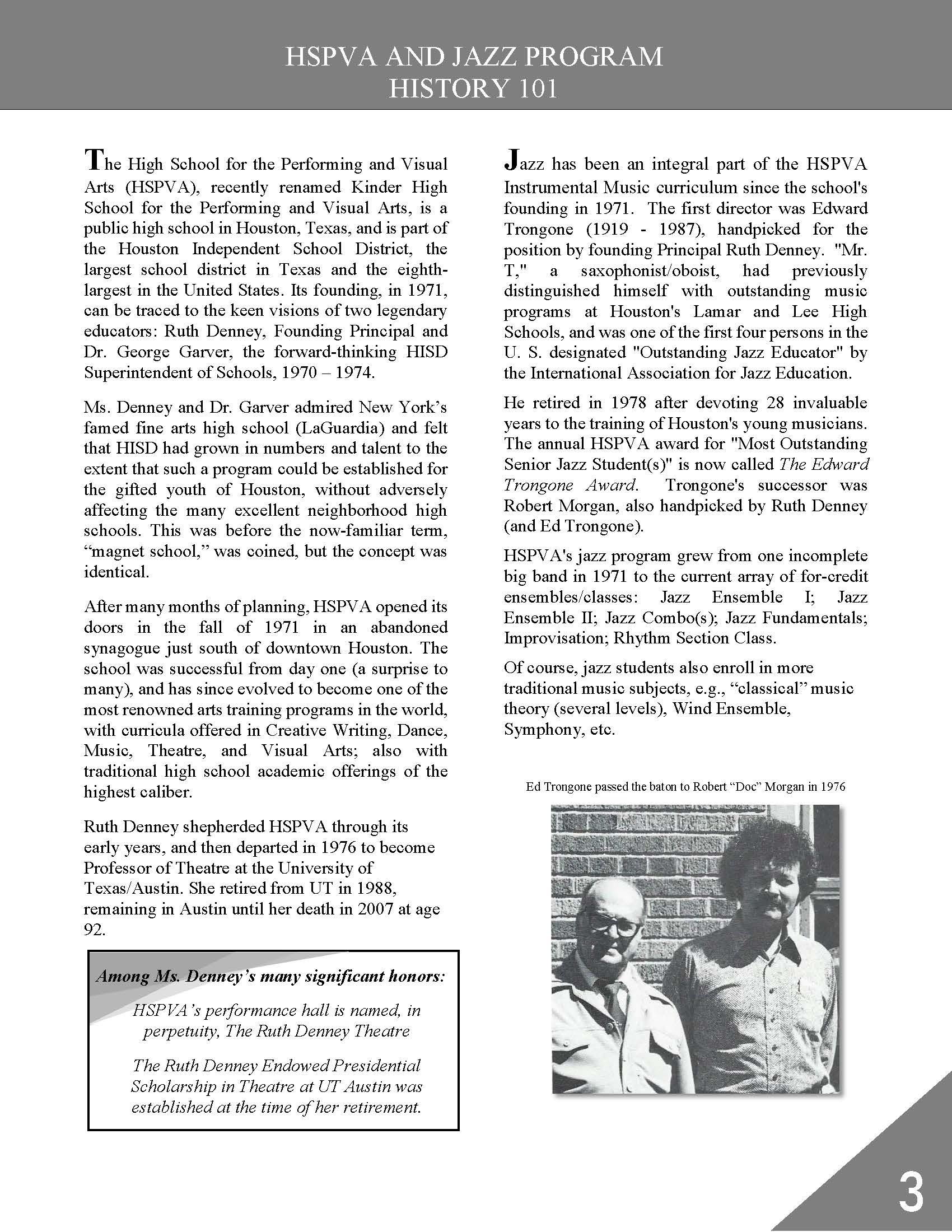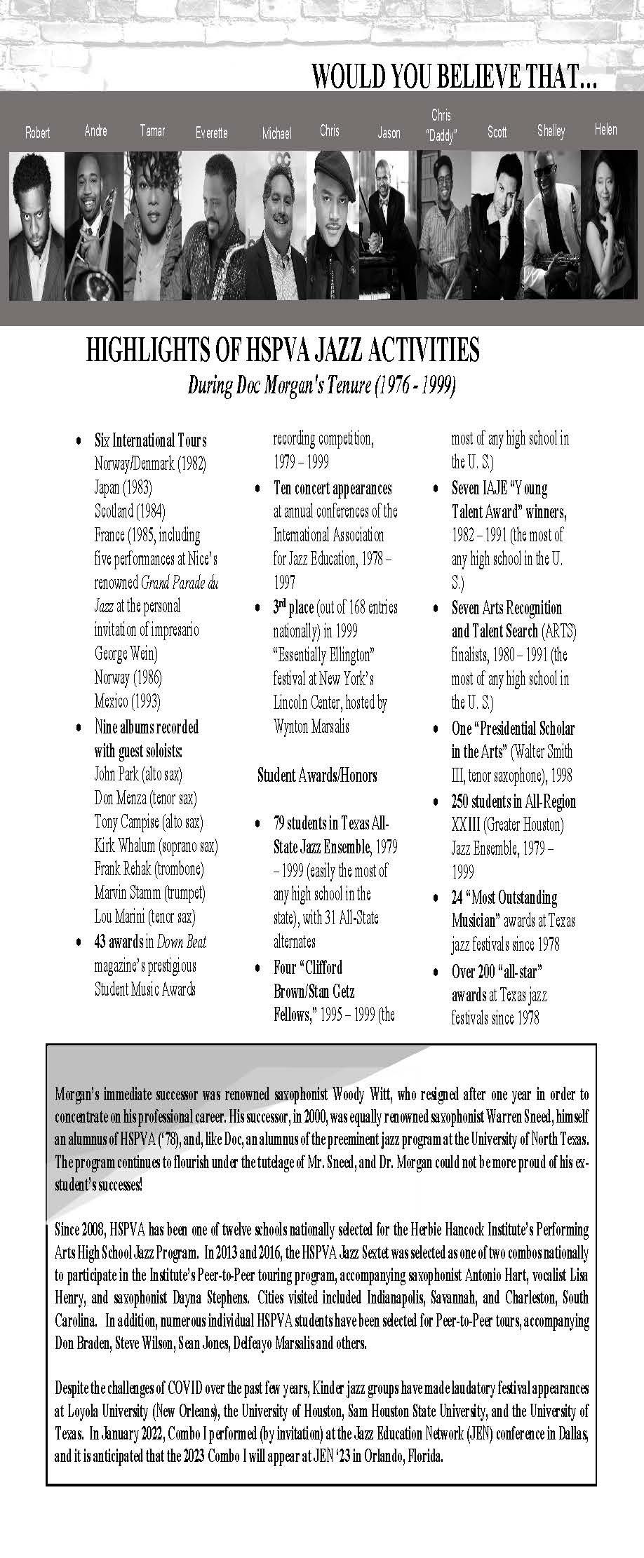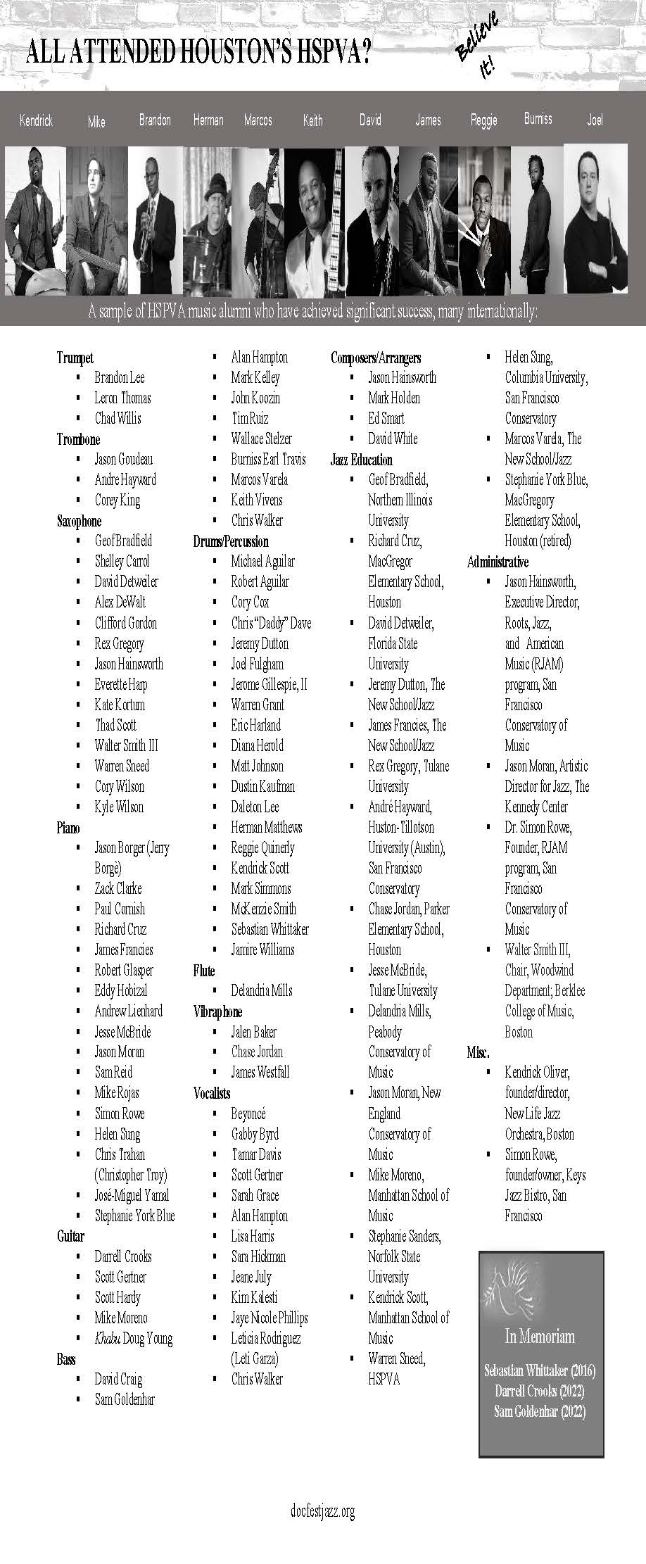 • HSPVA Jazz Hall of Fame
