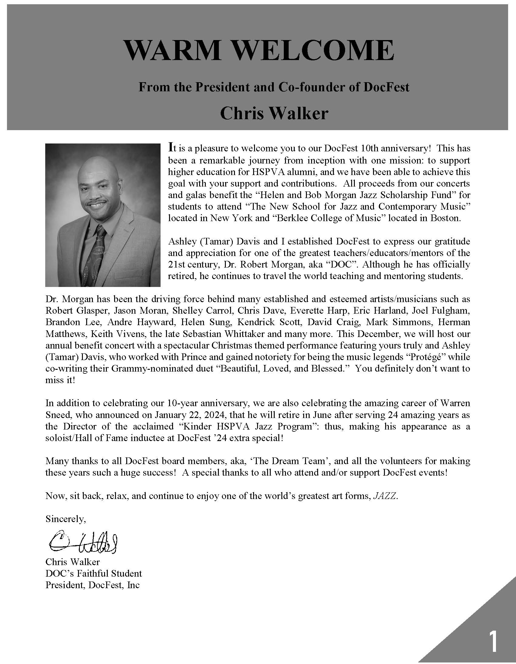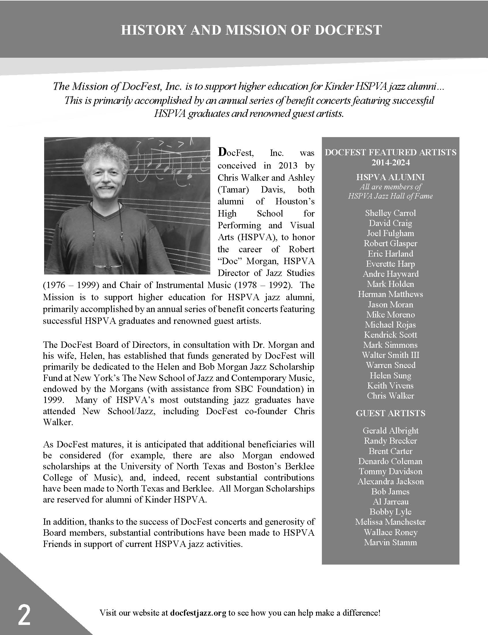 • The DocFest Holiday Concert is Dedicated to Doc’s Brother William Adams Morgan, Jr.