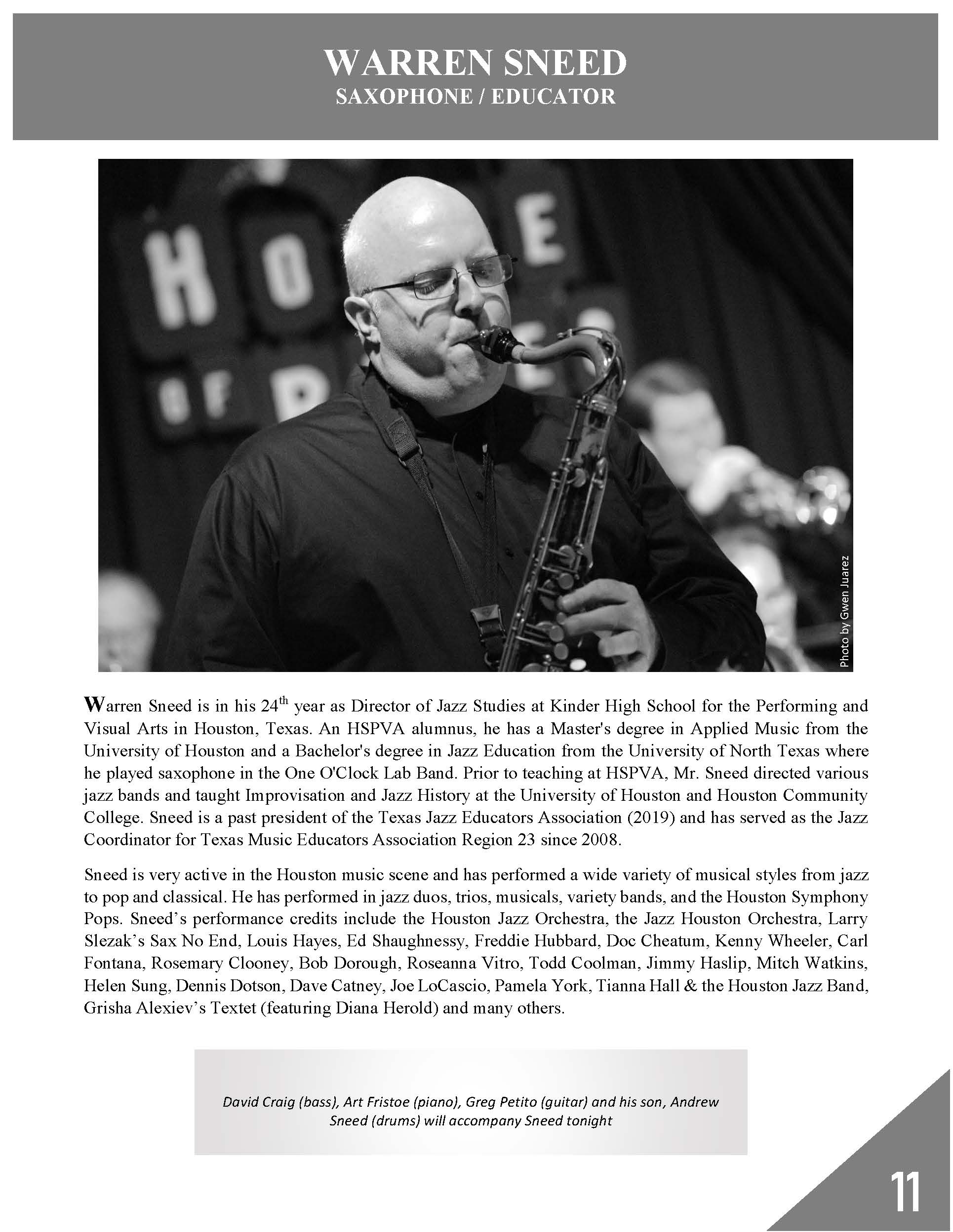 • New Director of Jazz Studies at Kinder HSPVA Houston, TX
