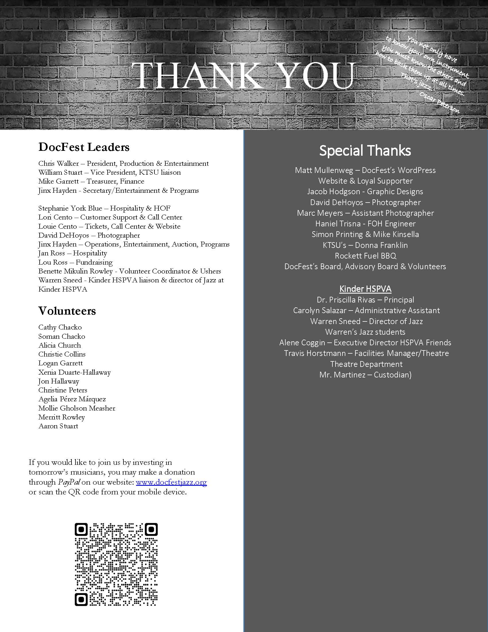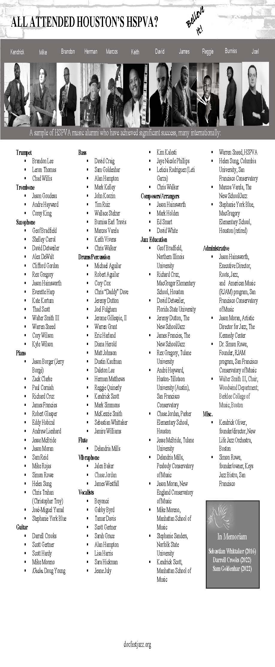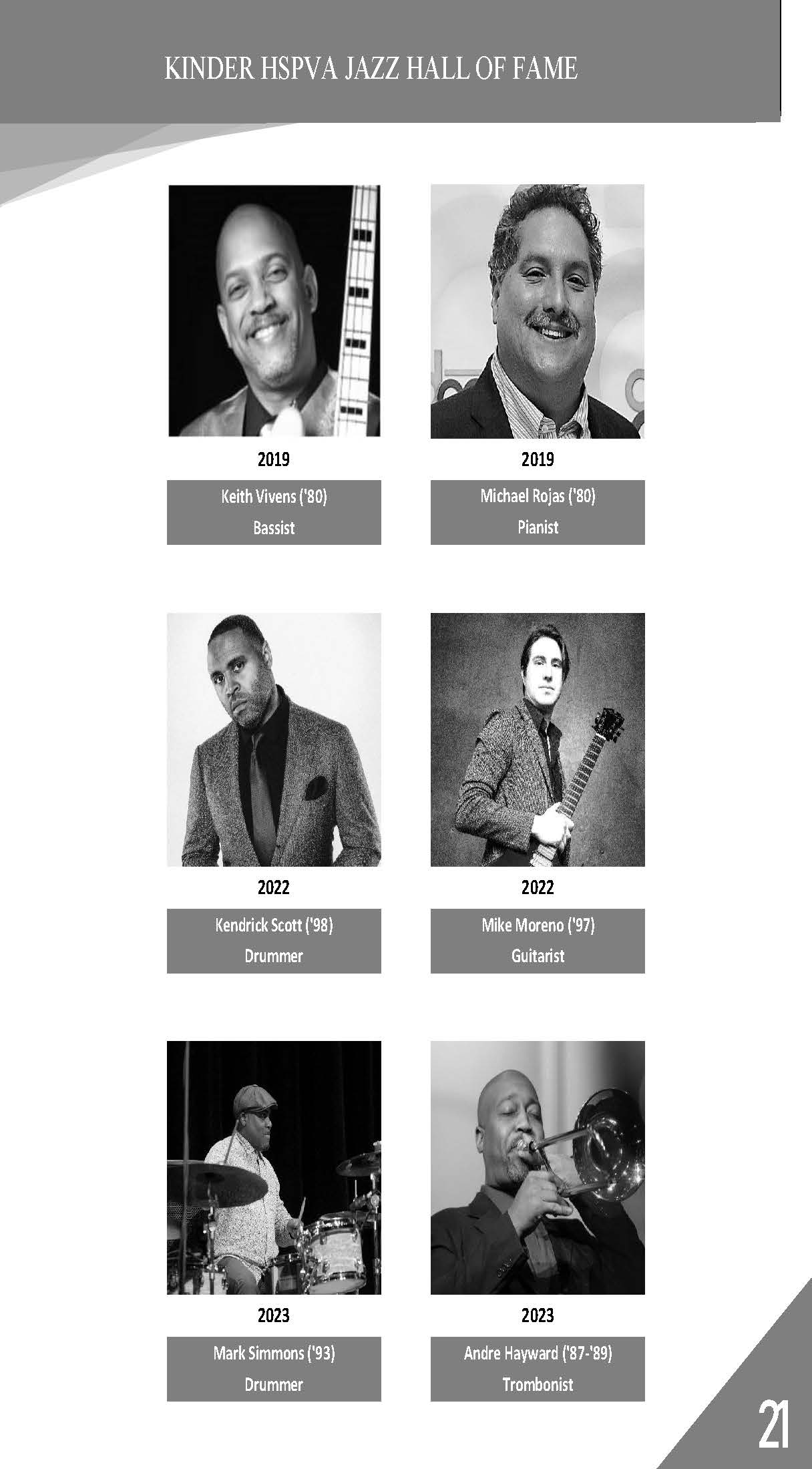 • HSPVA Jazz Hall of Fame